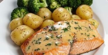 ✅Ingredientes: 4 filetes de salmón 1 lb de patatas bebé, a la mitad 2 tazas de flores de brócoli 3…